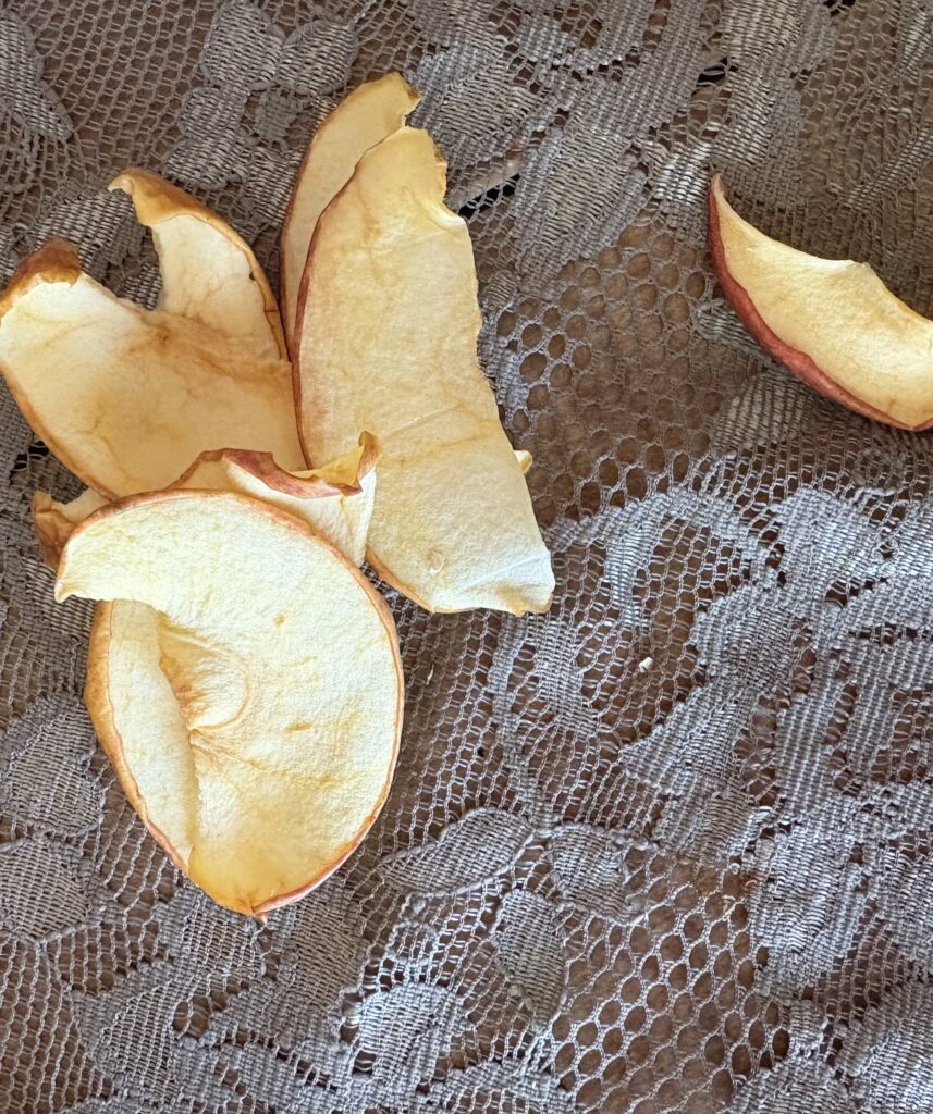 These are wonderful as is, but they are also a great addition in many ways, especially in fall. Apple cinnamon brings so much nostalgia, just the same as pumpkin spice. These dried apples will make it easy for you to fulfill that fall craving for sweet apple cinnamon. You can put them in your oatmeal or morning cereal. You can add them on top of some yogurt with granola. They’re great for baking, too. You can put them in muffins, cinnamon rolls, or coffee cake. They’re also really good in a trail mix with some almonds, walnuts, pumpkin seeds, and dried cranberries.